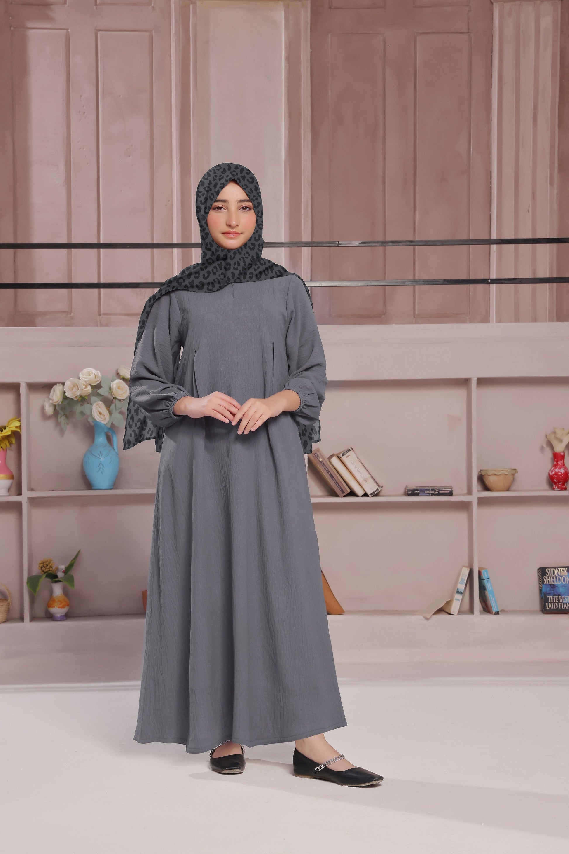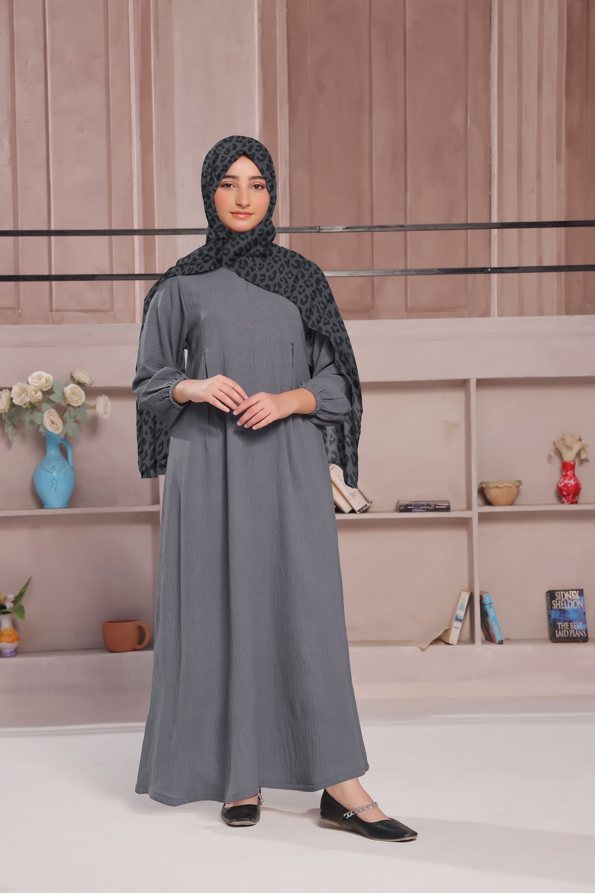 Grey is a must for your wardrobe collection with our new latest colors which is breathtaking and ultimately gorgeous which is our hot sellers these days maxi style abaya with front pleat adding more Flair loose pattern sleeves come along with pure Korean digital chiffon Sheila