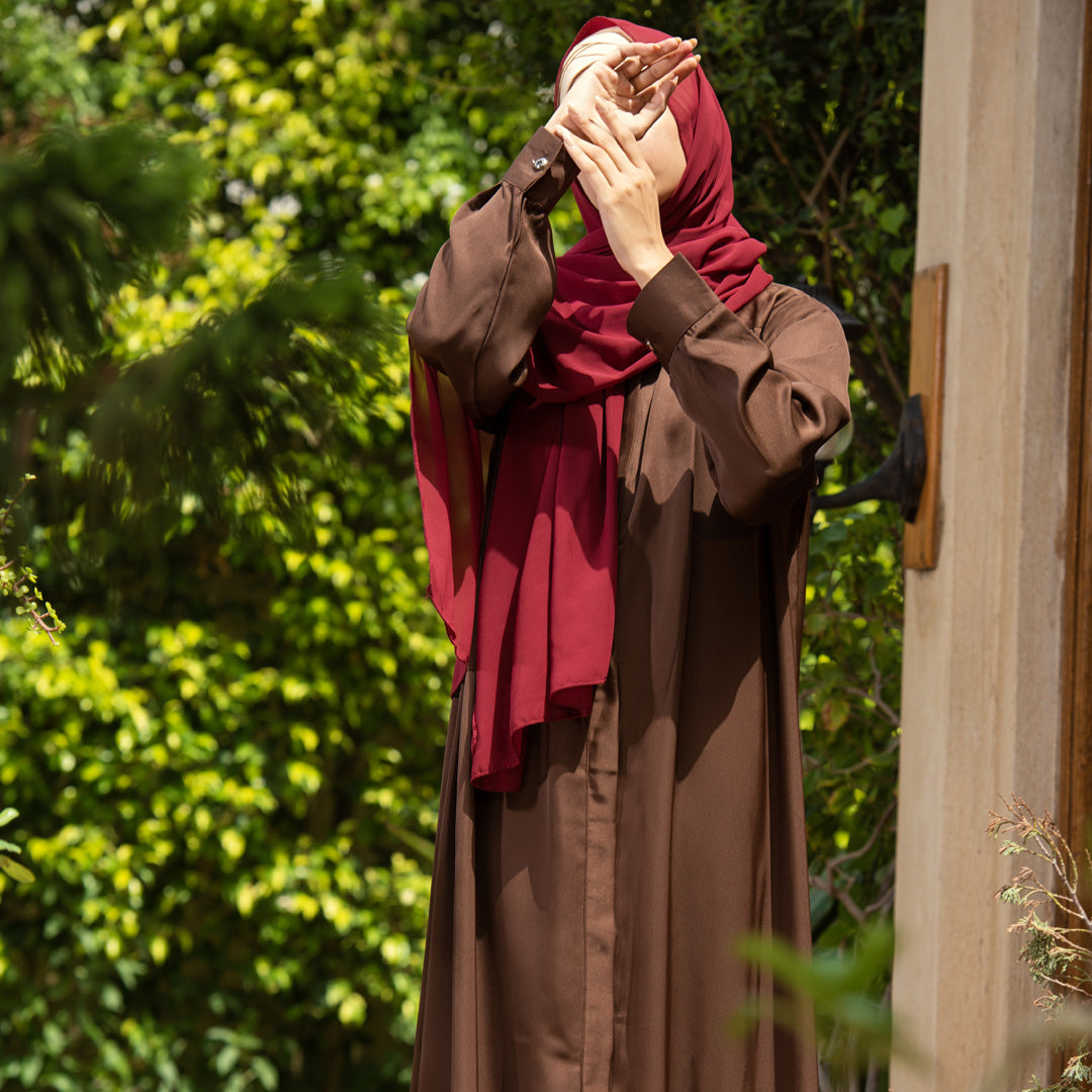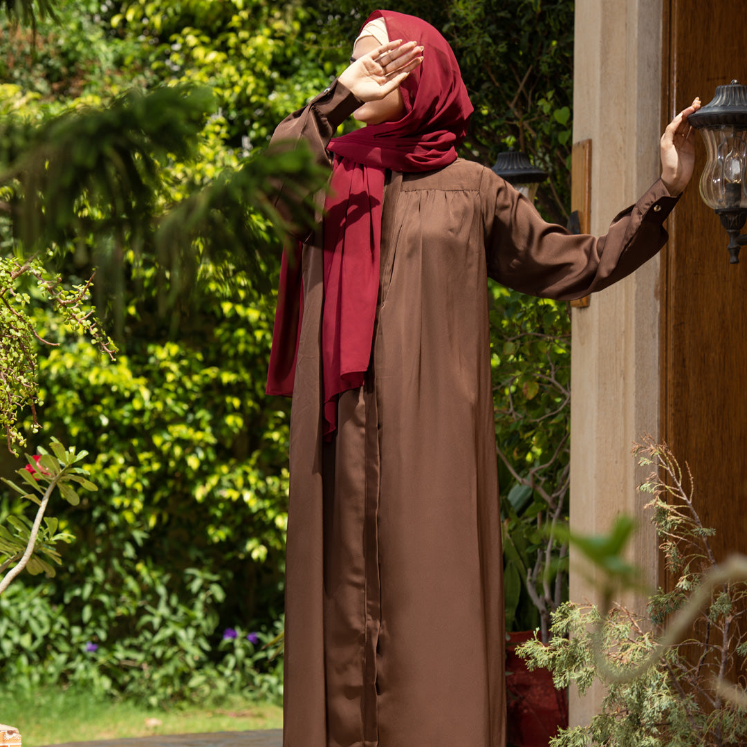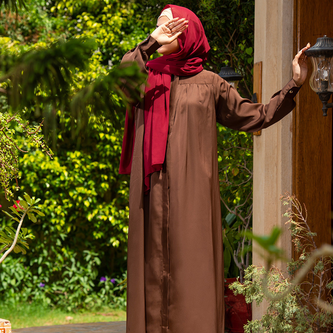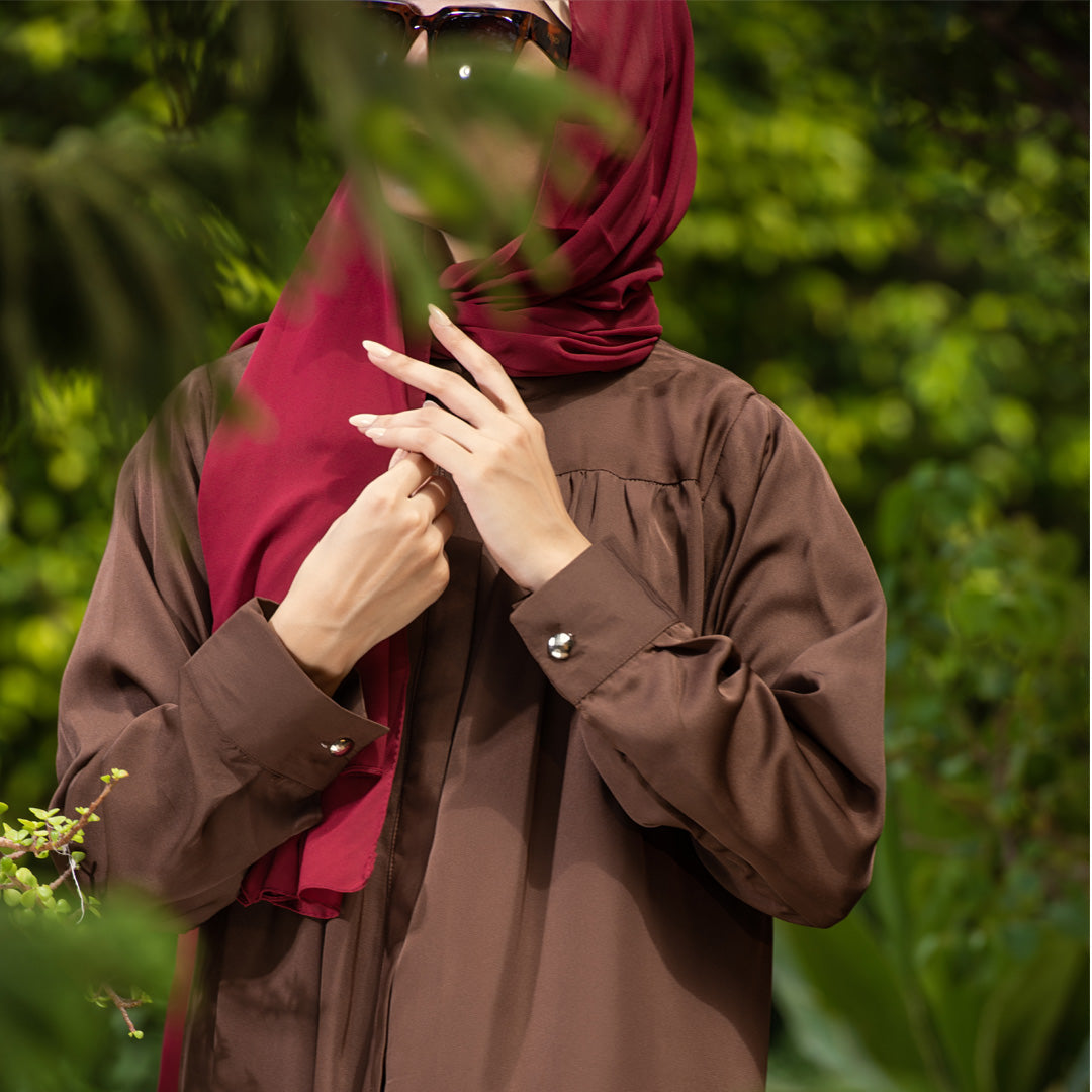 - Rich Brown Hue: The deep brown color exudes warmth and elegance, easily paired with various hijabs and accessories for a complete look.