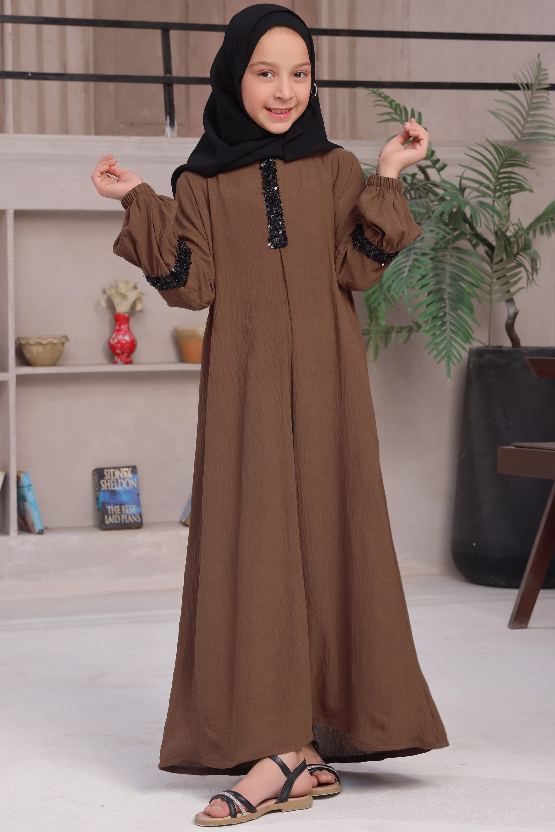 - Beautiful Sequin Lace Work on Front and Sleeves with Contrast Black Hijab: Intricate sequin lace detailing on the front and sleeves, complemented by a stylish contrast black hijab that enhances the overall design.
