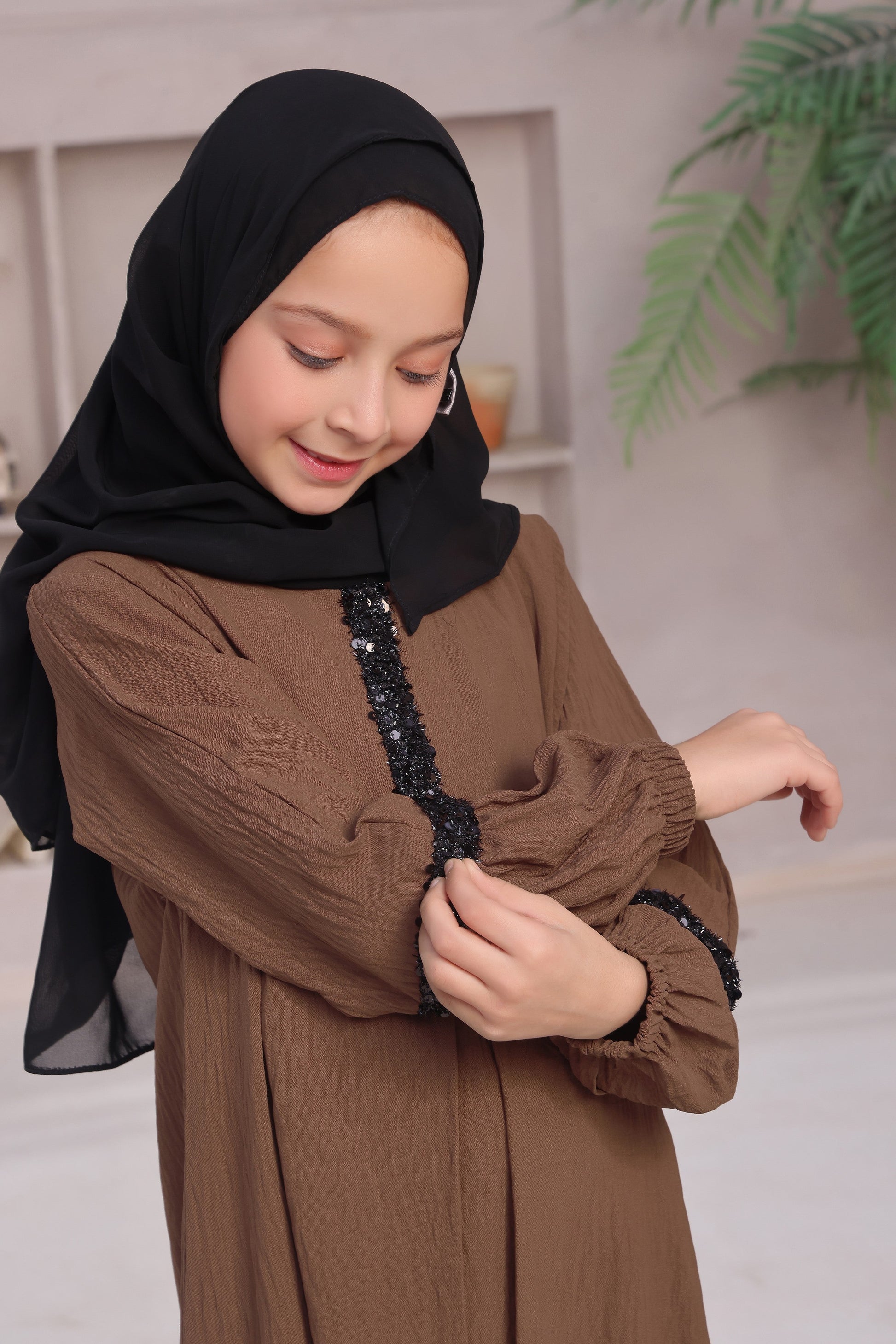 - Complete Look: Includes a matching contrast black hijab for a seamless, ready-to-wear outfit.